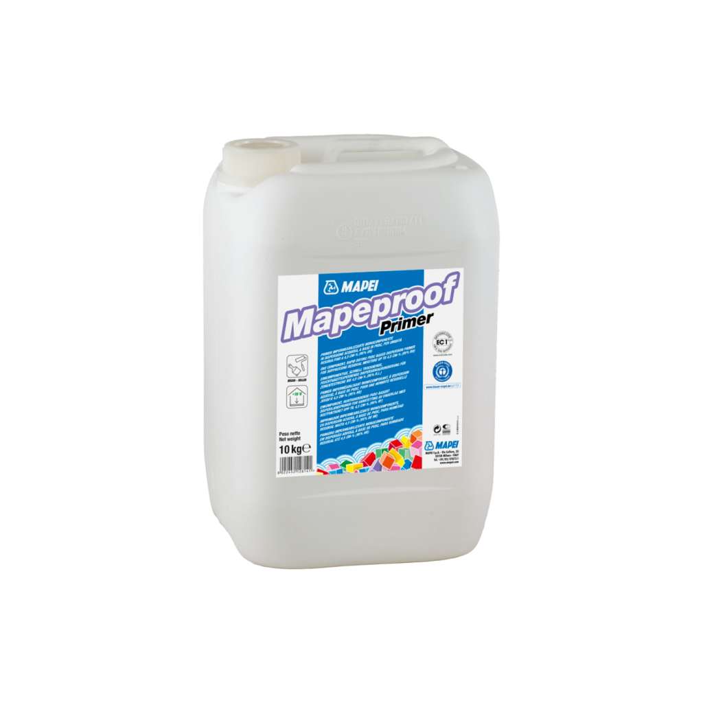 - Különösen alacsony nedvszívó képességű vagy zárt felületű simított esztrichek esetén első rétegként hordjon fel egy vízzel 1 : 1 arányban hígított Mapeproof Primer-t és hagyja megszáradni (kb. 20 perc), majd folytassa a következő két réteggel.